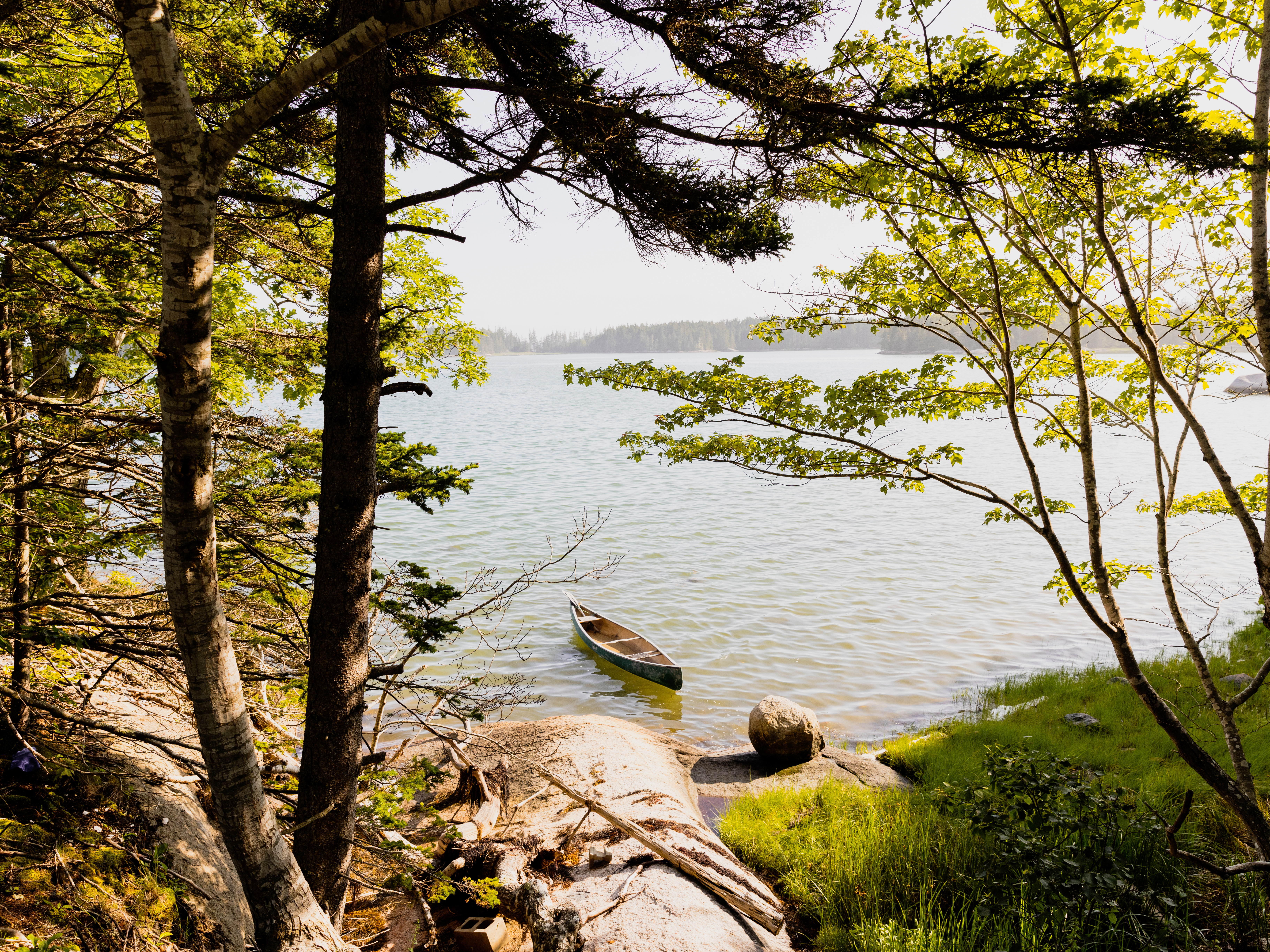 A floating canoe in Maine